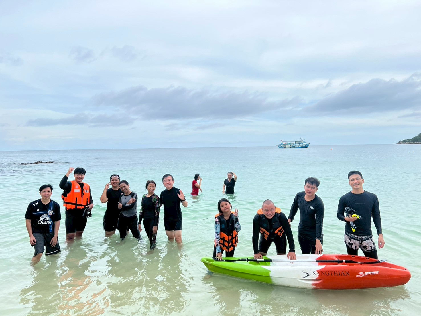 พนักงานทุกคนเดินทางโดยรถส่วนตัวและเดินทางไป ณ วัดละหารไร่ เพื่อไปกราบไหว้หลวงพ่อสังฆ์ซึ่งเป็นเจ้าอาวาสองค์แรกและหลวงปู่ทิม เดินทางต่อไปจุดรวมตัวกันที่ท่าเรือ เพื่อข้ามไปยังเกาะเสม็ดซึ่งเป็นจุดหมายของเราในปีนี้ นั่งเรือข้ามไปยังตัวเกาะและนั่งรถต่อเข้าที่พักเพื่อพักผ่อนไปกับเสียงคลื่นทะเล ณ แสงเทียน รีสอร์ท โอบล้อมไปด้วยธรรมชาติและชายหาด ออกมาเดินชมตลาดกลางคืน ถนนหาดทรายแก้ว และกลับมาทานอาหารเย็นพร้อมกับชมการแสดงโชว์ควงกระบองไฟสุดอลังการ